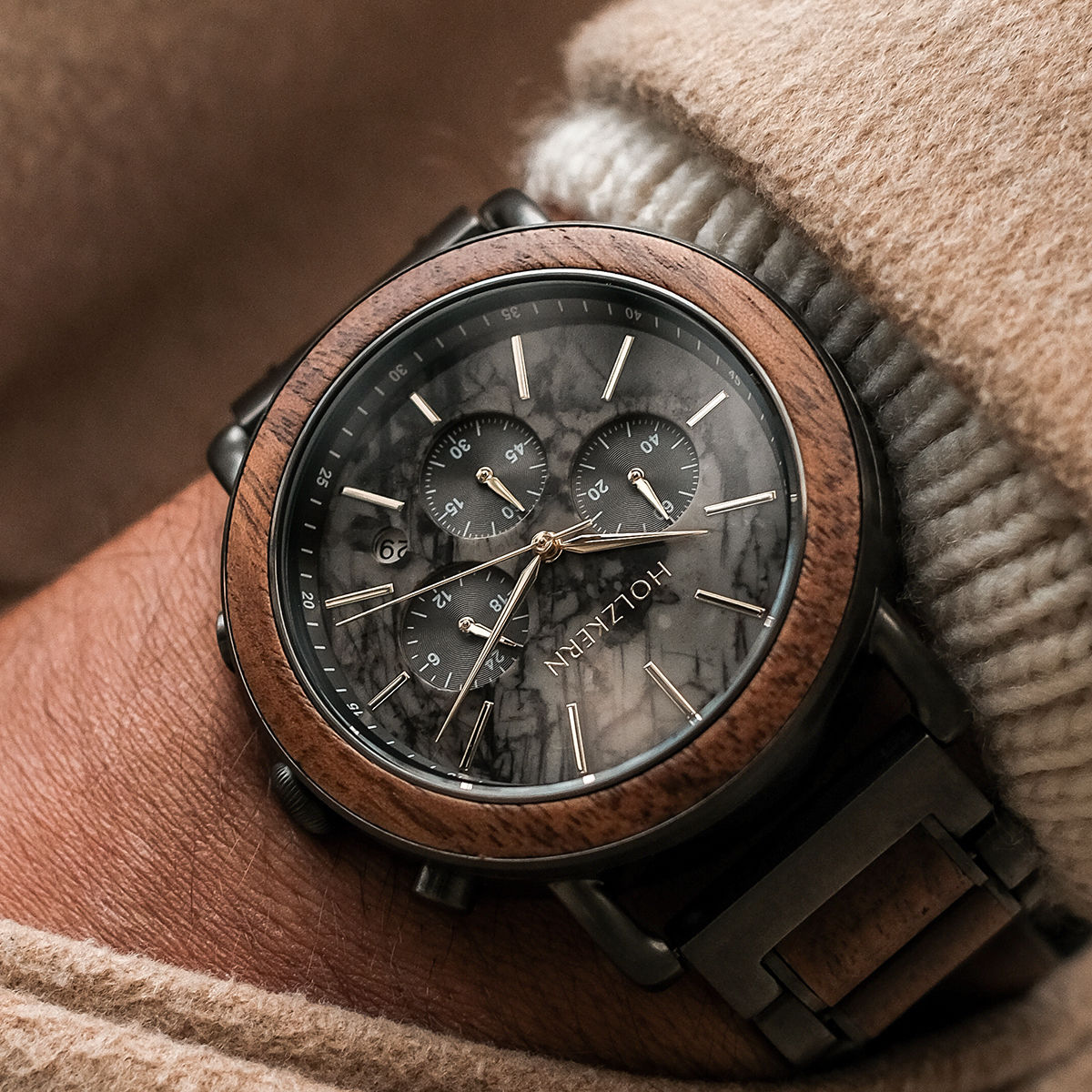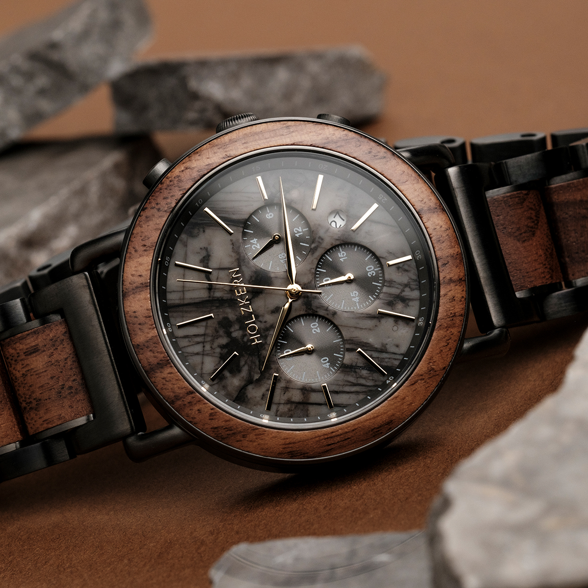 Naturen helt enkelt. Det är vad våra klockor och smycken representerar. De unika strukturerna av trä och sten gör din Holzkern-produkt till ett verkligt unikt exemplar.