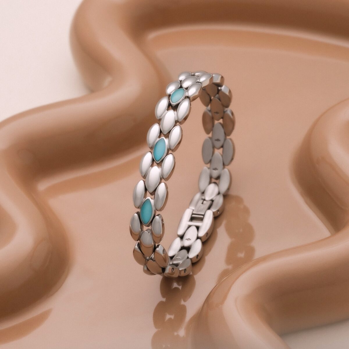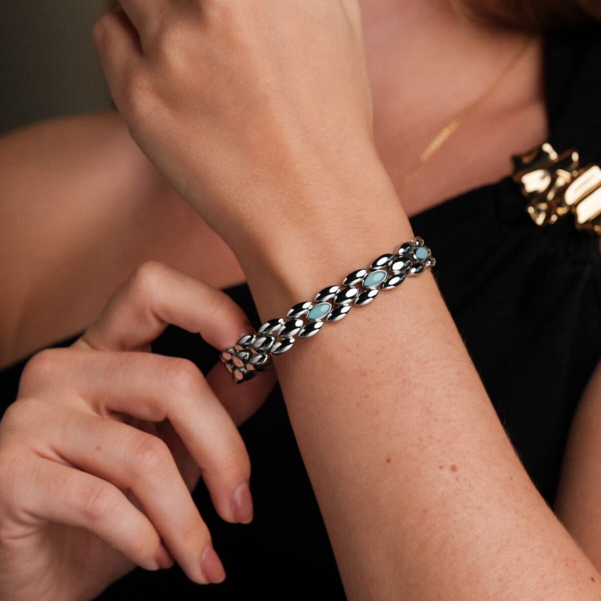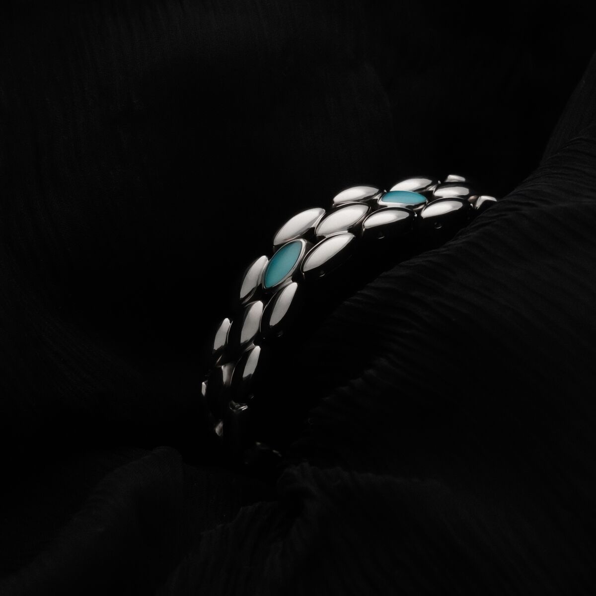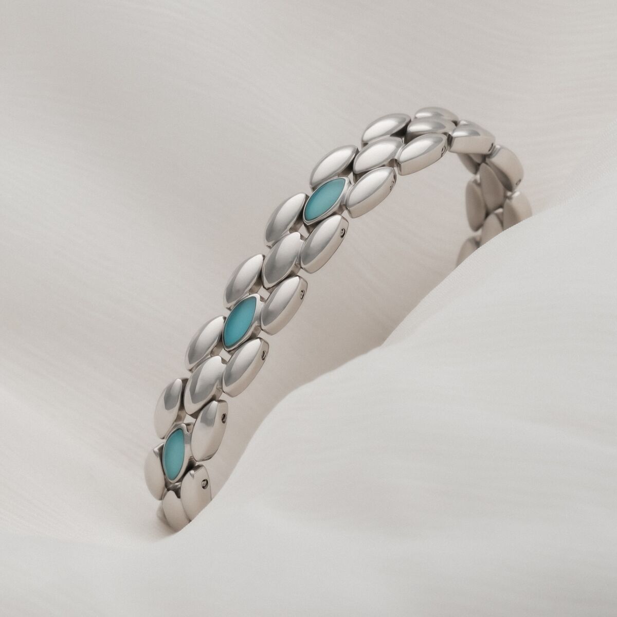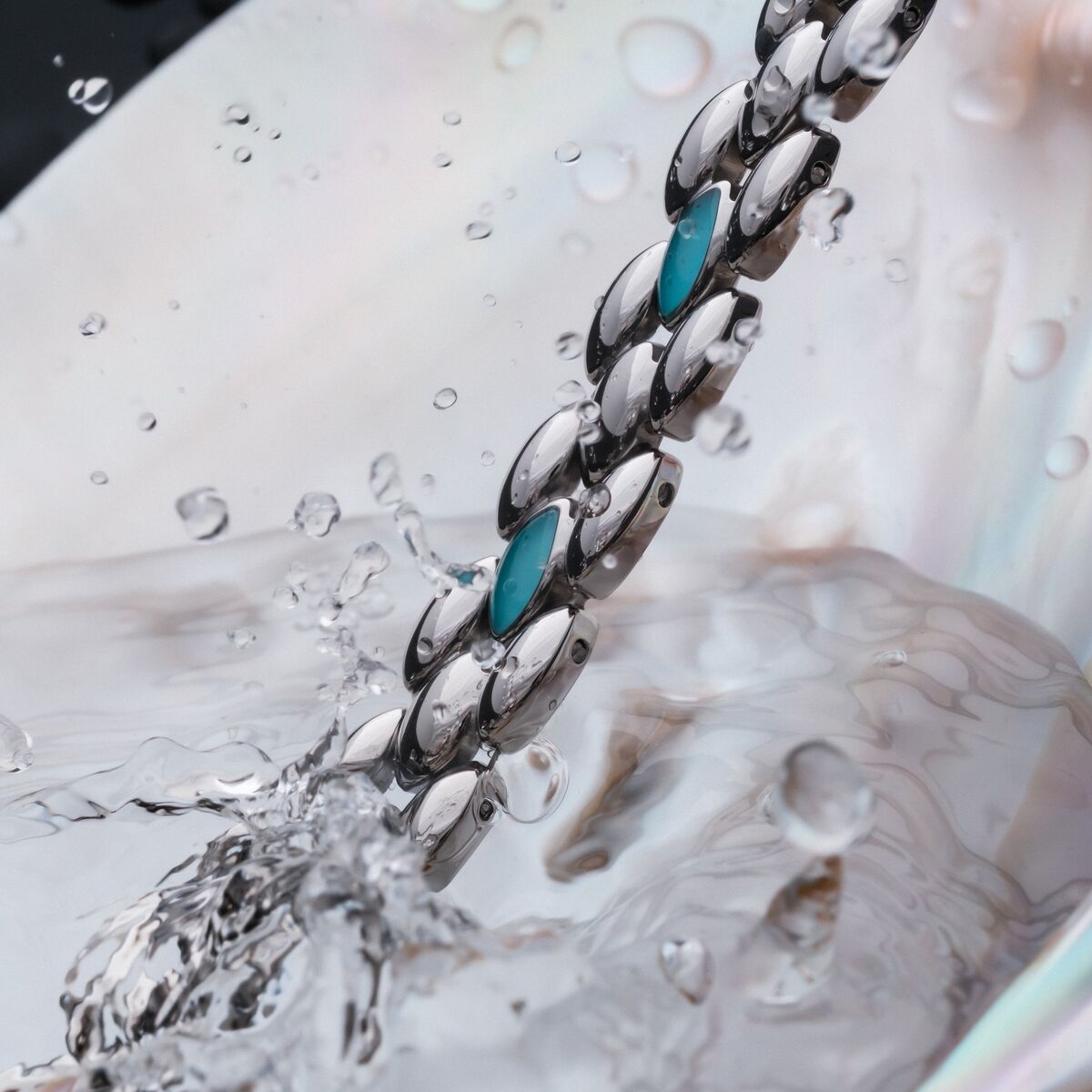 Ur denna stämning har vårt armband Fairylights fötts. En mjuk silvrig ton möter mystisk akvamarin där naturens skönhet förenas med tåligt rostfritt stål. Tack vare Hydro-Defense är armbandet dessutom garanterat vattentåligt och lika beständigt som den magi det bär inom sig.