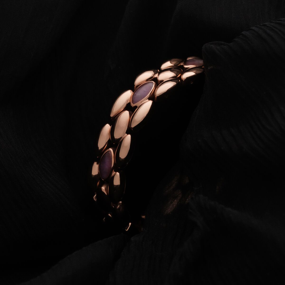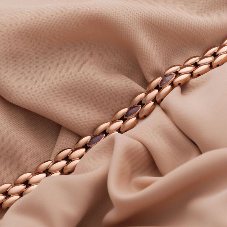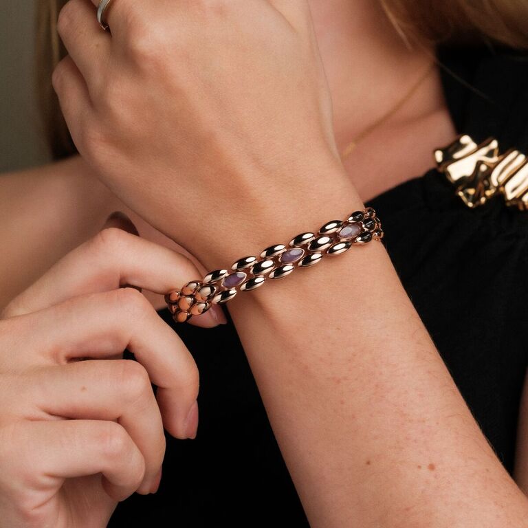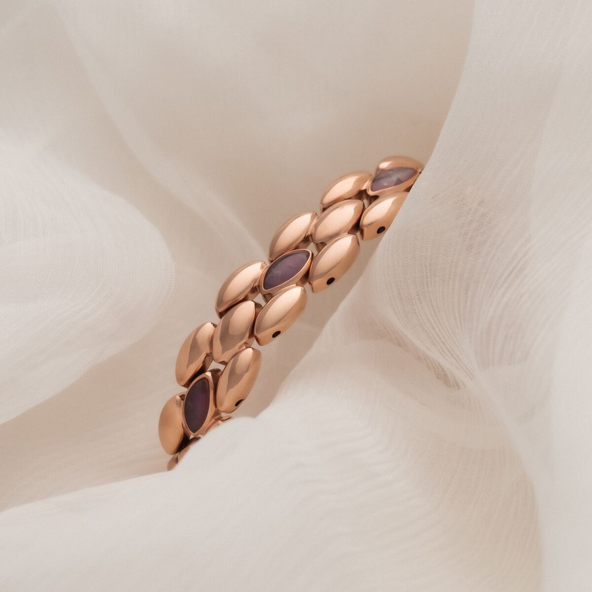 Ur denna stämning har vårt armband Fairylights fötts. En mjuk roséton möter mystisk ametist där naturens skönhet förenas med tåligt rostfritt stål. Tack vare Hydro-Defense är armbandet dessutom garanterat vattentåligt och lika beständigt som den magi det bär inom sig.