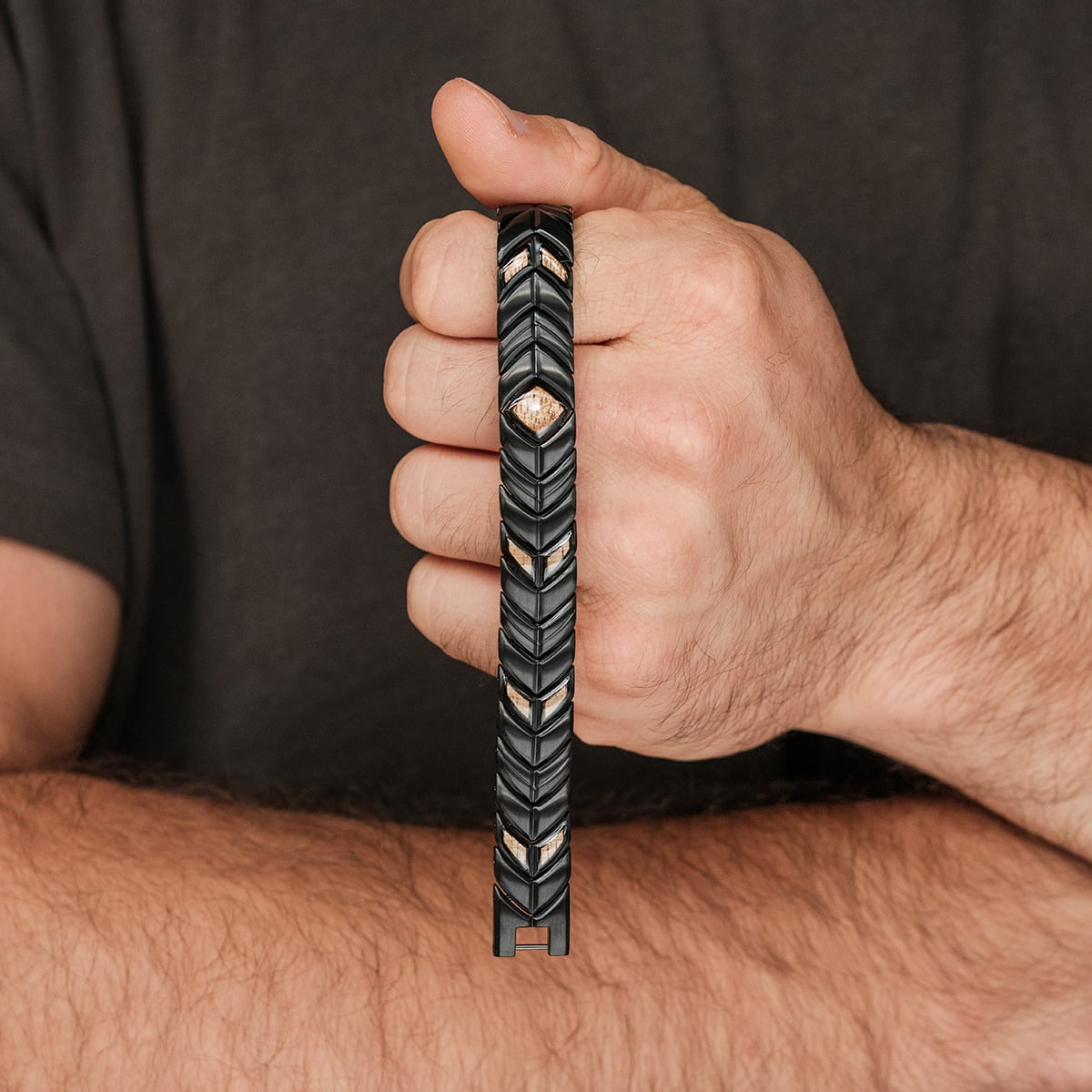 Upptakten till din naturliga stil. Stark metall och eleganta träelement i fiskbenslook gör vår Prelude-armlänk till ett naturligt unikt tillskott till din outfit.