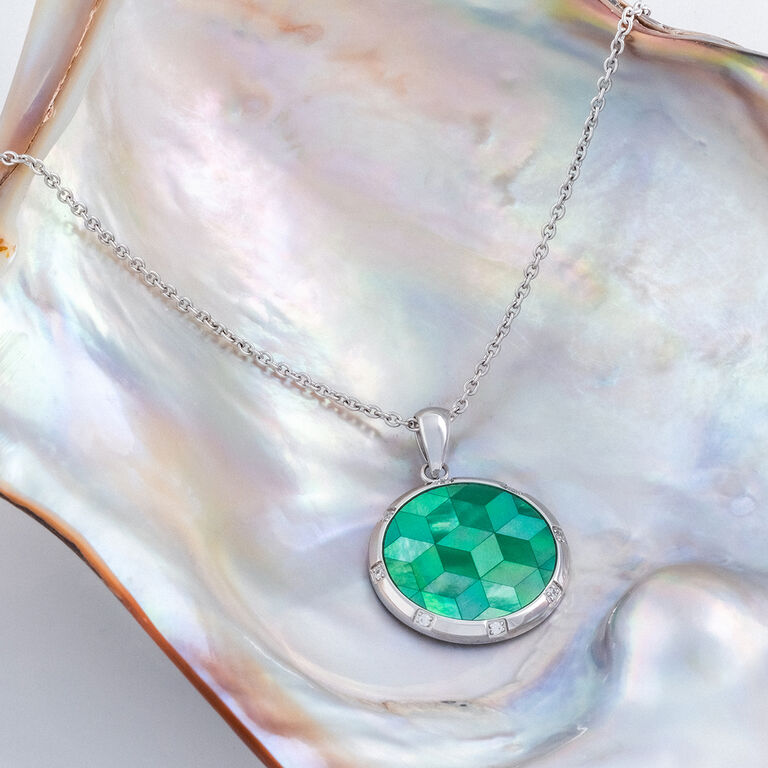 Mosaiken av skimrande grön pärlemor återspeglar ditt inre ljus och tar dig med till en värld fylld av färg, fantasi och känsla.