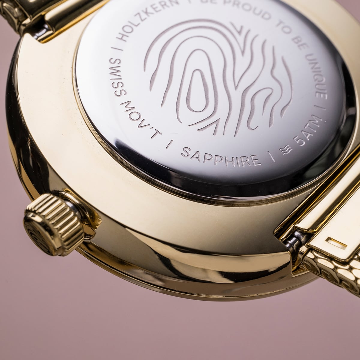 Tillförlitlighet, hantverksskicklighet och en touch av lyx: Schweiziska urverk står för högsta kvalitet världen över. Med orubblig precision och kärlek till detaljer tillverkas här urverk som varar i generationer. Även på Holzkern förlitar vi oss på denna speciella form av urmakarkonst: Swiss Made är hjärtat i denna modell och tar din tidsuppfattning till högsta nivå.