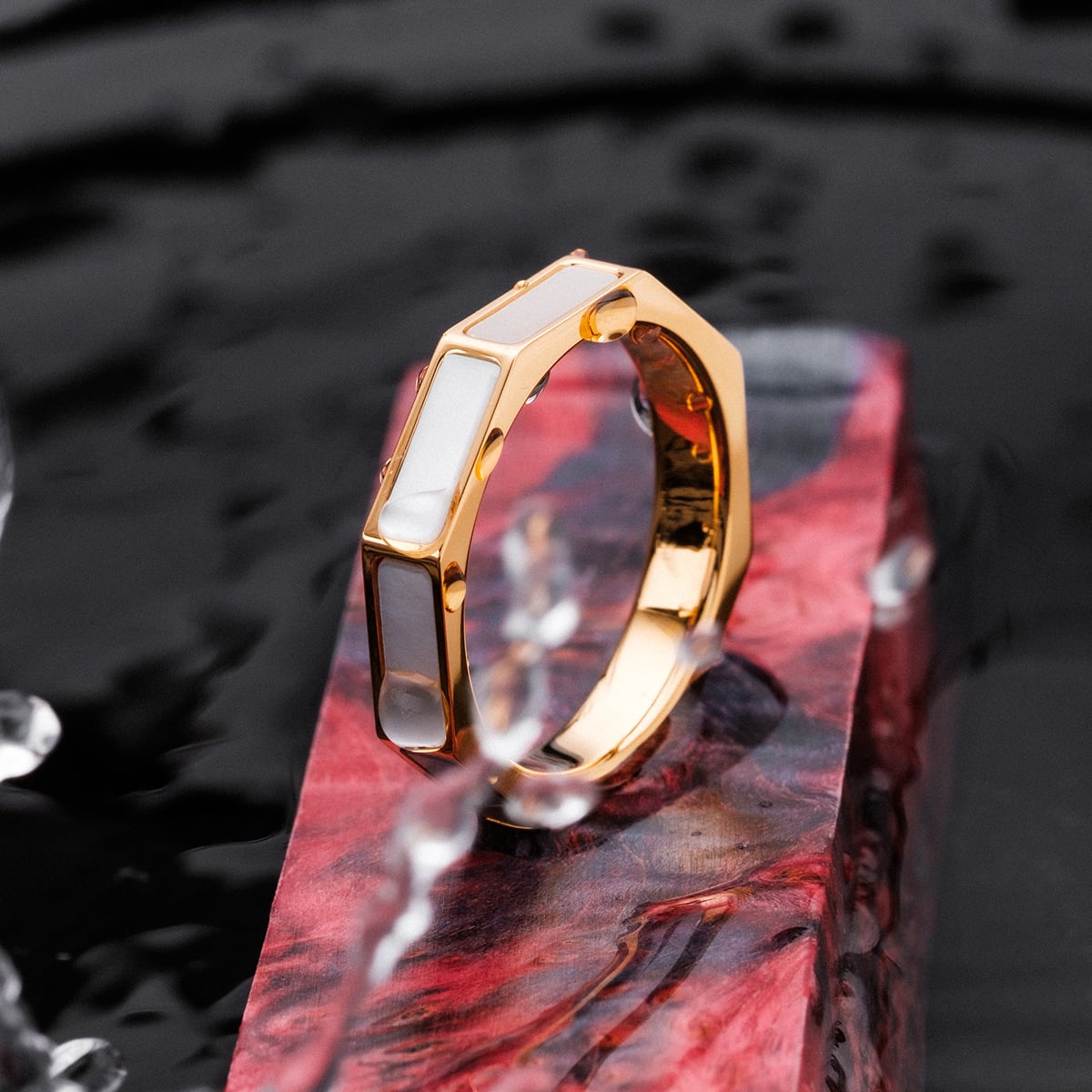 Material: Äkta vit pärlemor och 24K äkta guldpläterat 316L rostfritt stål